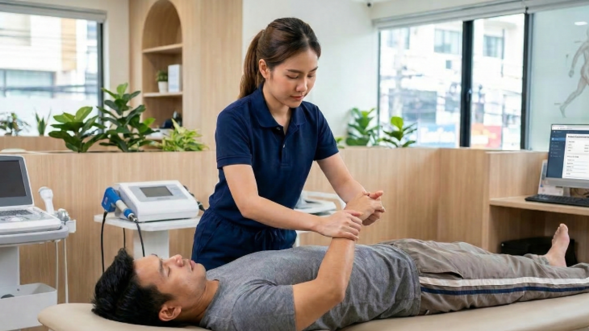 จัดการความปวดด้วยเทคโนโลยี: ใช้คลื่นอัลตราซาวด์ (Heal Sonic) ลดการอักเสบ และใช้เครื่องกระตุ้นไฟฟ้า (Pulse Plus) เพื่อคลายกล้ามเนื้อชั้นลึก